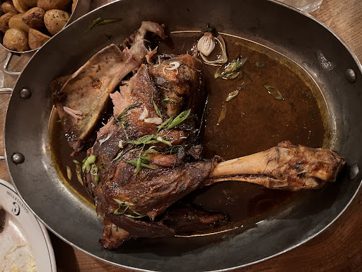 La table de 8 que nous fûmes a choisi d’une part des plats, de l’autre une pièce de viande. L’explication de la carte fut compliquée, possible de prendre des entrée seul ou de les partager (la quantité est elle adéquate ?), possible de prendre une entrée avec un accompagnement pour le transformer en plat (nous verrons plus tard que ce combo ne fonctionne pas pour tout les plats), enfin les viandes partent vite, à la manière des enchères, on peut choisir son morceau et se le voir chiper par la table d'à côté si pas assez rapide.