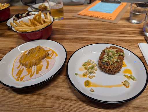 Je suis allé ce samedi 16 /11/24 j'ai réservé avec beaucoup enthousiasme pour l'anniversaire de mon mari aller manger fish-chip pour se rappeler de sa jeunesse en Angleterre avec ce plat . Mauvaise surprise 😲 un petit morceau de poisson on dira le morceau de poisson cantine maternelle et plus de la moitié du plat plein des industriel . Honestament très très déçu et mon mari aussi. Je me suis excusée avec lui car pour moi étais aussi la première fois dans votre restaurant brasserie. Par contre le service impeccable ( les serveurs) l'encadrement bien un peu froide à l'intérieur. Peut être pour boire une bière 🍺 je retourne mais pas pour manger . Dsl mais 17 € coût tellement cher pour manger que des frites. Après d'avoir manger quoi même on est parti tout suite et surtout TRÈS DÉÇUS. Nous voulons aussi découvrir la brasserie dans ce nouveau quartier ! À revoir...