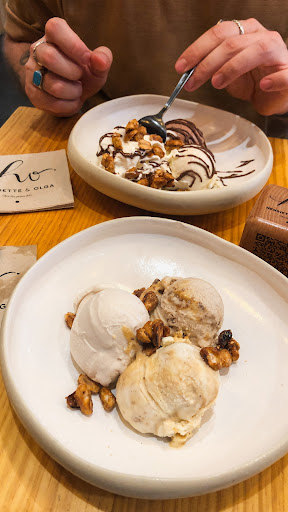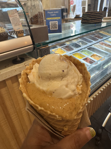 La personne derrière le comptoir était très sympathique, ce qui mérite d’être souligné. En revanche, le serveur s’est montré désagréable tout au long de notre passage. Le point de rupture a été lorsque j’ai demandé, très poliment, s’il était possible de changer un parfum de glace dans une de leurs recettes. J’aurais tout à fait compris un refus s’il m’avait simplement dit que cela nuirait à l’authenticité des créations en me proposant une alternative, et je me serais alors dirigée vers autre chose.