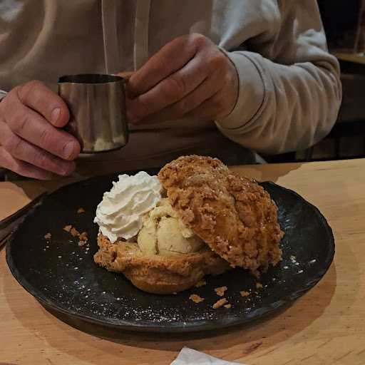 J ai pris une dame blanche comme dessert, et du coup c etait extremement fade, jusqu a ce que j arrive au fond de la coupe et découvre que le goût à été mis au fond. Première fois que je mange une telle glace avec le coulis de chocolat sous la glace... mais il semble que ce soit les process du groupe... (On voit bien sur d autre photos que le coulis de chocolat n est pas sur la glace) Je comprends qu il faut pas venir ici pour le goût...