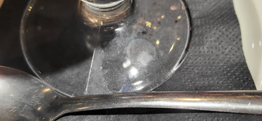 Autre problème pour le groupe, les assiettes noires mat marquent facilement le gras, du coup quand tu reçois l assiette t as déjà plus envie de manger quand tu vois combien de personnes on tripotées l'assiette avant toi. Même problèmes pour la coupe de glace arrivée super sale (plus de 3 traces de doigts super grasses)