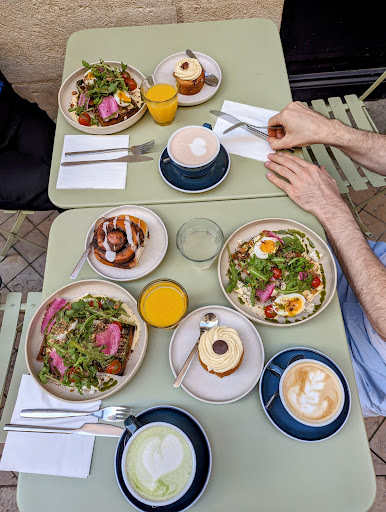 We went for a brunch and everything was amazing! The bakery as always very delicious and the food just yummy ! The staff as friendly and welcoming as always. Plus this place is in a quiet street, making it charming. 2 only drawbacks that I've had here on different occasions through last weeks/months, the Rooibos vanilla drink I had last weekend was lukewarm on a really hot day and another time(couple of months ago, one of the staff was a bit rude (my fork was dirty and when I asked for a new one she didn't apologize at all and kinda put it rudely in front of me)) but I don't see...