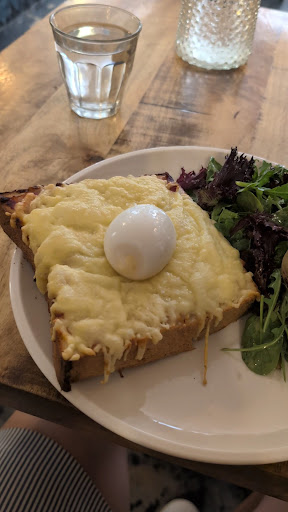 Good food and friendly service. Somewhat limited menu but we both chose Croque Madames and they were delicious. We've never seen or had it with a soft boiled egg, but it was nice, and the flavours were subtle and were not over salted in any way which was nice. Very well balanced. Good iced coffee with simple syrup (optional) It was so hot we sat inside, which was not air conditioned, but cool enough. Wore a favorite seersucker cotton shirt to help stay cool 😎