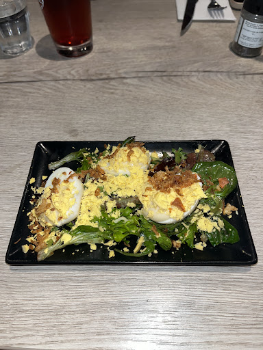 Read moreOeuf mimosa, déçue, mayo trop vinaigrée et jaune d’oeuf posé sur le dessus. Le burger était bon mais sans surprise. Un de mes amis n’avait pas de cheddar ni tomates dans le sien et a dû le renvoyer en cuisine. Malheureusement il n’y avait plus assez de frites pour faire de belles assiettes, elles étaient fraiches et très bonnes. Les quantités sont plutôt correctes pour le prix. Le dessert était bon mais sans plus, la brioche manquait...