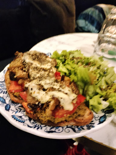 The kind of food that just feels right: hearty, healthy, fresh, delicious and a great value. It's surprising because I thought this place would be like a tapas snack lounge but it was the only place open late (it was already 10 pm) so we went for it and I'm happy we did. I saw some traditional options and my wife was in vegetarian paradise. We split three plates, thinking they would be small entrees, but we could barely finish: It was a feast. 3 plates and 2 glasses of wine for 38 euro: best value of the trip. We had the sicilienne tartine with tomato, garlic, pesto, and eggplant. I wasn't expecting much because I've tried that combo 100 times but this was special: powerful mix of herbs, some crazy secret spices (dill, oregano, cinnamon?), super fresh bread with crispy crust, salad with sweet-sour dressing and it all just pops and crackles. The camambert cossolote is rich, balanced out with a mix of tomatoes and bell peppers, like a tapenade, while raisins and honey bring this beautiful sweetness to the dish: simplicity and sophistication, hint of cinnamon in the toast. Finally, the duck confit cossolote: soft and buttery fall-apart meat with melted cheese and potatoes contrasts with salad: mix of fresh and fatty at the same time, strong comfort food vibes. They were a little understaffed but service was still good, atmosphere is wonderful on the plaza and inside has great lighting and decoration. It went way beyond expectations and if you're looking for a great meal for a great value, even late at night, (a big ask!) this is the way to go. Best bang for buck...