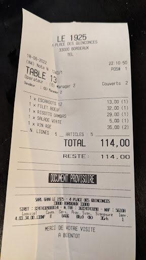 The food was ok but pretty average. Squid with rice was not hot enough. Disappointing for €27. €8 for a bottle of sparkling water was more than we have paid anywhere else in the area. Overall we felt the food was overpriced compared to many other meals we’ve eaten in Bordeaux and the surrounding area in the last couple of weeks. The dessert - described as a lemon meringue in the English menu - was distinctly average and slightly soggy in the middle.