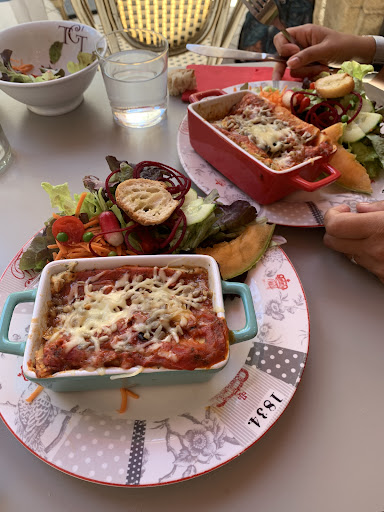 J'y suis venue pour un petit déjeuner que jai choisi sucré. L accueil était très bien. Le service impeccable. La musique d ambiance sympa. Sur le petit dej en lui même. Bémol sur les boissons : jus non pressé dans la formule. (Jus bio normalement) le thé (de qualité - en vrac ) est servi de manière très chiche (1/2 cuillère à café dans la chaussette à thé. La viennoiserie n est ni maison ni achetée auprès d une bonne boulangerie artisanale. On a l impression qu'il s agit de congelé cuit sur place (comme en supermarché donc...). Le fait que ça soit servi chaud améliore le goût. Le pain est bon mais servi froid. ... un petit grill aurait été meilleur. Le beurre est doux (je préfère le salé mais bon les goûts et les couleurs...). En revanche pas sûre qu'il soit barraté... sa quantité est suffisante pour les 2 tartines. Les confitures sont artisanales mais elles sont servies dans leur pot de 380g et passent donc de table en table (je vous rassure les cuillères semblent avoir été changées ) !!! Hormis la classique fraise les goûts sont originaux : pastèque grosseille / clémentine / kiwi / papaye à la cardamome. Bref pour conclure je dirai que c'était assez bien pour un tarif normal de petit dej à la...