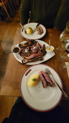 Recommended to us by our hotel. We arrived at restaurant without a booking but we were lucky enough for the staff to give us a table. The ambiance has a cool vibe and it’s obvious from the staff’s attitude that they love working there. Service was impeccable and our entree (squid) arrived in a timely fashion accompanied by our choice of Bordeaux wine. The squid was beautifully cooked and presented with a ‘to die for’ capsicum sauce, just the right balance of salt and sweet. My partner was keen to have duck for her main but because of the bird flu it unfortunately wasn’t available. We then made the biggest mistake of the evening. We ordered the ribeye for two. The steak was presented perfectly (medium rare)and beautifully seared with the perfect maillard crust. The perfect sides,shoe string potatoes, quenelled mash potato with a simple green salad. Our mistake was thinking that French beef had changed and was up to the standard of USDA beef or even Australian beef. In reality French beef is still the poor cousin to its antipodean counterparts. Let’s not even mention Japanese Wagyu! For €65 one hopes for more. Again the beef was prepared perfectly, it was just the beef that French beef let the dish down. We look forward to trying the other dishes on offer...