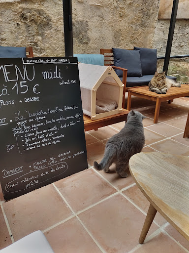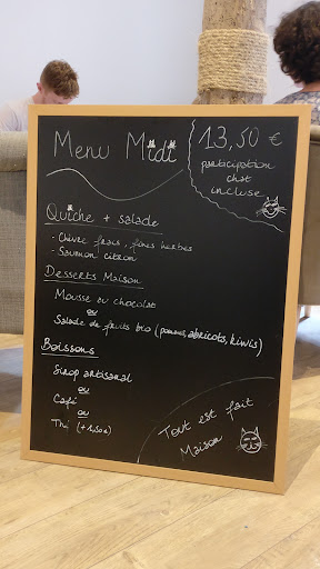 Extrêmement déçue. Les desserts sont succulents. Le thé & le smoothie de même. La justesse des saveurs y est donc pour ça bravo ! Cependant et pas des moindres "l'ambiance" qui y règne est très dérangeante! Dans un salon de chats on attend de voir des chats. C'est le cas & ils sont supers mignons ! La décoration de même. Mais le client souhaite aussi être au calme dans un environnement doux & agréable ! Malheureusement ce ne fut pas le cas. La fille du propriétaire râle après les demandes de son père, souffle par conséquent sur les clients (+ marmonne car agacée. C'est une ado elle ne le fait pas exprès & c'est aux parents de gérer/subir ça pas aux clients). Tellement pénible que des clients sont partis précipitamment. Nous les avons suivi de peu. Erreur de commande, il manquait des produits mais cela est dit 10min après la prise de la commande. Pas d'excuses... Le propriétaire cherchait sa fille et l'appelait fortement dans tout le salon... extrêmement dérangeant... (c'est même ça le pire. Puis de la reprendre systématiquement... très fort & devant la clientèle : super humiliant & surtout pour une ado).... peut-être commencer par lui demander si elle veut participer à l'entreprise familiale (en vue de l'ambiance ce n'est pas très "familial" ni convivial pour nous clients ni même agréable pour vous. Vous êtes stressés et c'est palpable). Lui montrer en dehors des horaires d'ouvertures comment faire peut être une idée. C'est vraiment dommage car cela a gâché cet instant. Il n'était plus reposant ... on arrive heureux et repartons agacés. A rectifier ... car cela salit réellement l'image de votre société. Peut être augmenter un brin la quantité des smoothies quitte à rajouter 1€ sur l'addition car 20cl (une tasse à café) pour un smoothie c'est trop peu. En tout cas bon travail pour le reste !