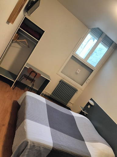 Read morePour la partie restaurant, bon pas très cher et bien présenté. Pour la partie "hôtel"... Littéralement j'ai fui prévu pour un séjour de 5 nuits si j'avais pû je ne serais même pas rester une nuit, les parties communes sont propres et plutôt mignonnes, ça se gâte a l'ouverture de la porte de la chambre. Pas de Vmc ça sent l'humidité la chambre est austère et vétuste mais cela passe encore que la télé soit petite et au plafond que la vue de la fenêtre soit impossible et donne sur un mur passe encore... Mais la moisissure de la douche, les portes qui ne se ferment pas, les fuites de la douche le robinet pleins de calcaire et plus que usée, le mobilier endommagé les poils sur la cuvette des toilettes, et surtout!!! Les poils et cheveux dans les draps avec une grosse tâche blanche suspecte c'est inacceptable!!! Pas de chauffage ou sèche serviette donc après avoir pris votre courage pour rentrer dans la douche en compagnie de moisissure et les fuites la chambre devient encore plus humide. Réveil 6h30 7h par le musique du bar qui remonte dans la chambre...Je vous conseille le restau mais pour "l'hôtel" un formule 1 avec douche sur le palier vous satisfera bien...