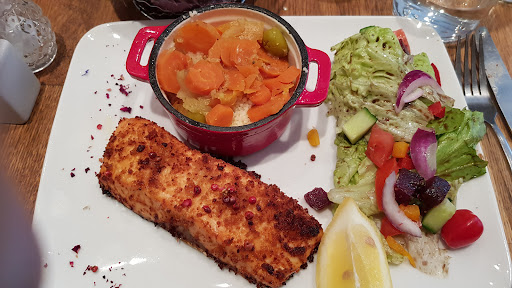 Read moreRestaurant à fuir : 1/ Le service était chaotique. Nous étions disposés à être très indulgents avec la nouvelle serveuse en cours de formation. Mais la suite du repas s'est dégradée : apéritif arrivé après les entrées, foie gras poêlé alors que ni la carte ni les serveuses ne l'indiquaient, poisson à 17€ surcuit, sec et sans sauce pour faire passer ça, etc 2/ une assiette a eu de la salade au lieu de frites comme demandé. Conciliante, la serveuse propose de revenir avec des frites à côté. Mais elel revient quelques instants plus tard reprendre l'assiette posée devant notre nez (et bouche sans masque) pour tout changer. Deux options : du gâchis alimentaire ou une belle entorse aux gestes barrières : on espère que la purée de patate douce, la salade et la viande n'ont pas atterris sur une prochaine table. 3/ nos voisins de table, déçus également de découvrir que leur tajine n'incluait pas de semoule en accompagnement, nous avons eu droit à une esclandre splendide du Chef. Sorti tout spécialement de sa cuisine pour venir les agresser verbalement, il n'a pas tenté de les écouter pour comprendre leur mécontentement et est reparti sans laisser place au dialogue. Quel intérêt du coup ? À part celui de mettre mal à l'aise tous les autres clients au passage ? 4/ Vu le montant de l'addition, nous aurions mieux fait d'aller dans le restaurant gastronomique que nous avions initialement sélectionné... 5/ je sais que nous allons avoir un commentaire incendiaire de la propriétaire m'expliquant à quel point c'est irresponsable de laisser une si mauvaise note pour la survie de son restaurant. Et rien que pour ça, je le fais pour tenter de lui faire ouvrir les yeux sur les médiocres promesses clients de son établissement. A bon entendeur...