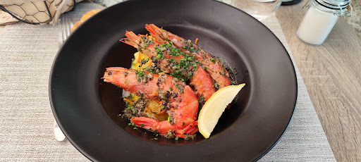 Read moreSi vous passez dans la région il faut absolument programmer une étape pour venir vous y restaurer! Désolé de pouvoir fournir seulement la photo de mes gambas grillées que je n'oublierai jamais mais l'entée était aussi très rafraichissante une soupe froide à base de comcombre et basilic et fromage une turerie aussi. J'en ai oublié de faire une photo. Le cadre est idylique très belle tonnelle on y respise il y a de l'air et on s'y sent tellement bien! Je pense y retourner c'est obligé. Mon épouse a trouvé l'adresse car il est putot bien noté. Je crois que mon avis ne changera pas grand chose car le lieu semble connu. En effet nous avions réservé fort heureusement car la terrasse est devenue vite blindée au cours du repas. L'emplacement ne saute pas aux yeux car il se trouve un peu à l'écart au calme mais cela ne pose aucun problème car tout le monde semble bien connaître à voir les habitués qui sont arrivés. Très belle découverte continuez votre cuisine comme j'ai pu l'aprécier aujourd'hui...