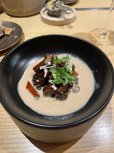 The first course was where my path began to diverge due to my allergies, which - to the restaurant’s credit - were handled well. My husband was presented with a fried oyster, and a mollusk paste that resembled imitation crab. I got a burnt piece of root vegetable with a horrible combination of flavors in a foam. We ate, hoping it could get better.