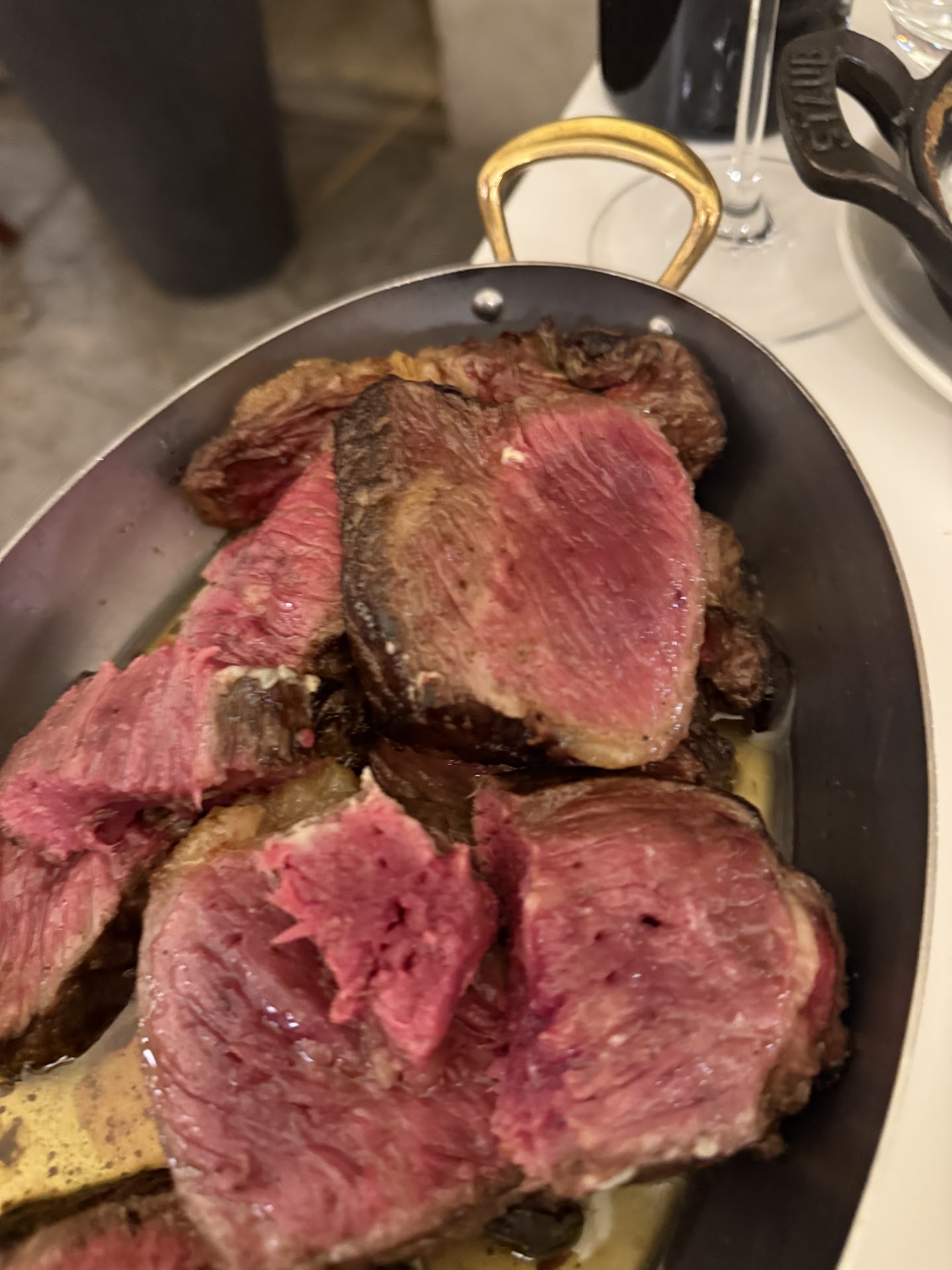 There was only a three course menu on offer. We ordered the mushroom ravioli for entree and the shared beef for our main meal. There was an 18€ per person additional charge for the beef. The mushroom ravioli was lovely. We ordered our beef medium. When it came out, it was Blue. We asked the waitress if we could get it cooked a bit longer as we wanted in cooked medium. She didn’t even acknowledge us and in a real huff took it away. When it came out again, it was rare. The photo shows the beef after it came out the second time. The waitress just dumped in on the table and walked away. By this time, our two side dishes were cold. We then asked the waitress if we could get the beef cooked a bit longer as it was still rare. By this time we’ve been picking at our sides, but one is stone cold, so I ask the waitress if she could please heat up the side of potatoes so that we can eat them hot with our beef when it comes out. So the steak and potatoes come out again. The potato dish is now missing the mash that it originally came out with and the beef’s been reheated 3 times and it’s just not good and now we are just over it. Not once did anyone check in with us. My partner speaks French so it wasn’t a language issue and we’ve both been waiters, so the total lack of care was staggering and the service recovery was non existent. Now my partner never complains and he is so kind, you can win him over so easily, but even he was peeved. So we speak to another waitress and we advise that we don’t want dessert because it’s now 11.30pm and we’re over the whole thing. She was great and said she’d speak to the manager. We then spoke to another waiter who was sent to us (he was lovely and helpful) and the restaurant manager offered to not charge for the dessert that we didn’t have, waive a side dish and not charge one of us for the beef surcharge (but still charge for the main meal, just not the beef surcharge). My partner explained that this was not good enough because we hardly ate any of the beef main meal. Again they had to speak to the manager who agreed to remove the other beef surcharge. So we’re still paying for two entrees and two mains. Turns out the waitress wrote on the order we wanted our beef rare, so it was their fault and after both times we sent it back, it would be expected for the waitress to check if we were ok. Also, if someone sends the food back after it’s their mistake, then take the sides away and bring them back hot with the meal. Our sides were out for 30 minutes before we got the final third time cooked crappy beef. Having to fight for service recovery is terrible. Our bill at the end was 261€. I would never eat here again. Don’t go!!! We left feeling really bitter and peeved that they had to speak to the manager three times, like restaurant manager, if your staff are speaking to you three times about your guests, go speak to the guests and make it right!!!! I have not felt this disappointed or ripped off ever.