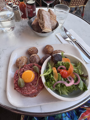 Read moreA leisurely Saturday evening meal here watching the world go by. I had the Tartare de Boeuf and it was very tasty, especially washed down nicely with a glass of Bordeaux Red and of course some water! Service was lovely. I was served by the lovely and very attentive, Maxence who made me feel at ease trying to make my order in French. I was very impressed with how observant he was too - I dropped my knife part way through the meal and within seconds he had replaced it with a new one. All the servers were jolly too. Excellent...