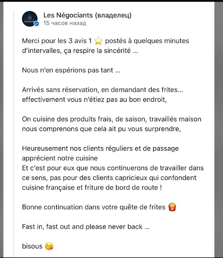 Before coming to your restaurant, I had actually read many positive reviews and expected to discover a true culinary gem. That is why I left my review - because, believe me, I have been to many restaurants, both Michelin-starred and ordinary ones, and I can clearly tell the difference between food that can be eaten and food that cannot.
