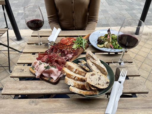 A cute wine bar that serves their own bread to the great selection of charcuterie, cheeses and more. It is a litte off the usual „food streets“ of inner city Bordeaux, which we found to be nice. We had the exceptionally tasty selection of charcuterie with a side of home made pickles and a few different kind of bread. All things were quite reasonably priced, specially regarding the quality. Of course there is are great wines too from the region. The owner helps you find the wine to fit both your food and your needs and is generally very helpful and friendly, even though she might seem a bit dry at first sight. You get to taste the wine she recommends first before ordering a glass, which is also great. Overall a...