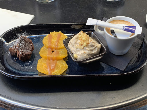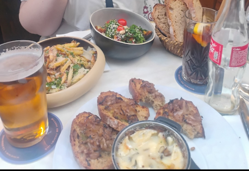 Read moreAprès avoir attendu 40 mn installés sur une table à peine propre, un serveur nous demande si notre commande est prise. Non, elle ne l'est pas... il nous demande donc ce que nous voulons sans même nous proposer la carte. Il ne nous demande pas si nous désirons une boisson ou autre... 15 à 20 min plus tard un autre serveur nous demande si notre commande est prise. Oui, elle l'est. Il vérifie auprès de son collègue qui nous avait manifestement oubliés. Nous degustons un plat très bien préparé : gambas bisque et pâtes. C'est excellent, ça excuse le retard. Nous leur demandons un verre de vin. Tout est OK. Et tout à coup je reçois un violent coup sur la tête et entends un grand bruit : une moulure "collée" sur l'ardoise au mur derrière moi vient de me tomber lourdement sur la tête, renversant ensuite mon verre de vin. Les clients autour de moi sont un peu choqués, ainsi que les passants. Ils me demandent si je suis blessée. Un serveur viendra quelques minutes plus tard, récupérera le morceau en me demandant si ça va, rien de plus. Pas un geste commercial ne nous sera proposé et aucune excuse ne me sera présentée... cette attitude me choque et n'est pas commerciale à mon sens. Concernant les toilettes, il y fait si sombre que l'on ne sait pas où l'on met les pieds. On attend son tour dans une pièce non pas en "chantier/travaux" mais dans un désordre total et pas entretenu. Si c'est en travaux, il peut être bien de l'indiquer...