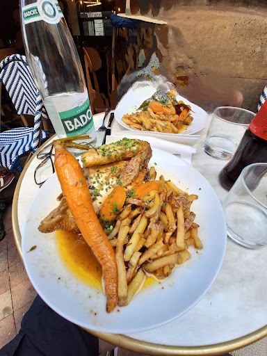 Read moreCame here for lunch Saturday at about 12.30. We are non French speakers and the wait staff were friendly, attentive and explained the menu when we didn't understand. The ambience is relaxed but the food was just ok. The plate of the day was chicken carrot and chips. Chicken was dry and the chips were over several hours old (possibly from last night). We also had the chicken risotto which was ok. The risotto itself was intensely salty, however was ok when eaten together with the chicken. Probably won't be coming...