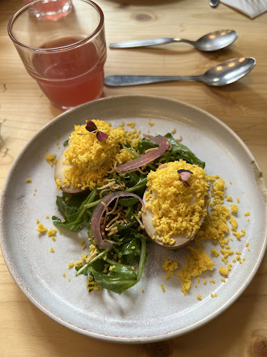 Read moreJe vous recommande chaudement ce superbe restaurant ! Marie Curry vous assure l’éveil de tous vos sens : à peine entrée, l’ambiance y est chaleureuse, avec un style aussi bien décoré qu’épuré, on peut humer les douces saveurs depuis la cuisine ouverte ! Les cheffes sont adorables, elles mettent du cœur à l’ouvrage et vous offrent un chef d’œuvre au sein du plat servi : c’est une explosion d’esthétique et de goût ! De quoi régaler pupilles et papilles ! Ça croustille, c’est aéré, c’est mousseux, c’est épicé, c’est coloré : il y a en a pour tous les goûts ! Le voyage exotique est assuré. Ce restaurant est également très bien situé, à deux pas des cloches et en plein centre : idéal ! Un grand merci pour cette parenthèse hors du temps ! A faire et à refaire sans...