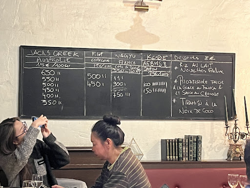 Read moreWonderful Léo at the door showed us to a table, but so much "happy to see you" felt like we were friends forever. When it starts this way, your hopes get up. A moment later, we were greeted by Alexa. Wow, what energy! She was fantastic. Her english was perfect & helped the non french speakers thru a vast menu. The dry aged beef vs- the Australian beef vs- the rich flavored Spain meat.... so much to think about, but Alexa said so much about each style of beef that we settled on a great meal. The Moelleuses & Persilles is a true beef house. Beautifully cooked & served. Maybe a better dressing and at least 1 tomato on the salad would have made it a salad, but we were there for the melt in your mouth beef. The Chateau Sainte-Marie Pomerol wine (the young 2020) was a superb choice with the beef. That wine was perfect & did not disappoint. ...