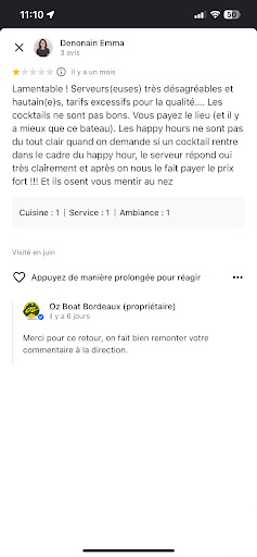 Bref je me suis fais recaler et mal parlé comme si j’étais un gamin alors que j’en ai 35 ! Je suis bien éduqué, respectueux et nous avons la chance de pouvoir dépenser sans compter ! C’est fou d’en arriver au stade de recaler les gens en début de soirée, surtout quand on propose un service de restauration. Et c’est encore plus pathétique de mal parler et être impolie avec sa clientèle!