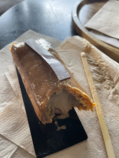 Fatiguée . Je comprends qu ici quand tu commandes il faut à chaque fois ouvrir le paquet. Je commande deux éclairs chocolats . Et pff j arrive très loin et ce sont deux éclairs café . Je déteste le café dans mes gâteaux!!! J ai édité ma première impression. Je n ai pas aimé l éclair au chocolat non plus quand je suis retournée. Puis ai découvert qu à bordeaux bcp de pâtissiers mettent du caramel dans le chocolat . Je déteste cela . Mon fils a dit que c était bon. Par contre la meilleure tarte aux fraises à bordeaux . Très très bon!