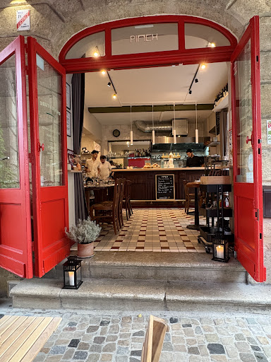 This was a lovely find. There were 8 of us, 4 went for the menu decouverte suggested by Flavian the owner. The basic idea is that you know what the main part of the meal will be (fish or meat), but the entrees before that are chosen by the chef. The others went a la carte. Nobody was disappointed. In fact we returned next day mid afternoon when the kitchen was closed and Flavian produced a croque monsieur truffe that was one of the best i had ever had. The place has only been open 4 months, the staff are all very friendly . Pinch is set on the corner in one of Bordeaux back streets, the doors open onto 2 of the streets? So there was a gently breeze. The only downside is that if you are eating outside on the pavement you are very close to the traffic. But thats good as the drivers are crazy to watch, after a few beers, very entertaining! I...