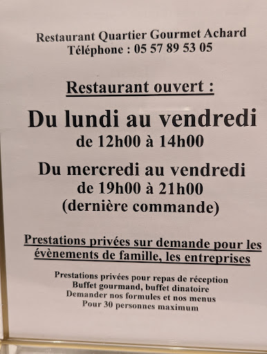 Quartier Gourmet Achard offers a lovely dining experience with a focus on high-quality ingredients and great flavors. The menu is diverse, with something for everyone, whether youâre in the mood for a savory dish or a sweet treat. The ambiance is charming, cozy, and perfect for a casual yet refined meal. Service is friendly, although it can be a bit slow during peak hours. Overall, a great spot for anyone looking to enjoy well-prepared, flavorful food in a...