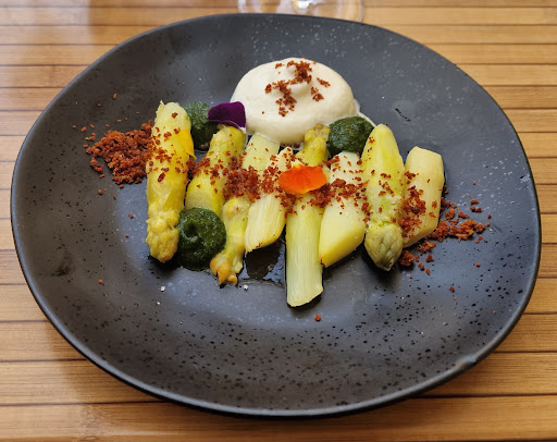 Read moreTrès grande déception. Pourtant, tout avait bien démarré. L'accueil est agréable quoi qu'un peu maladroit, la salle est chaleureuse et la déco jolie. Lors de la commande de vin, on sent que le serveur est débutant, mais, le vin est délicieux et abordable. Ensuite, en choisissant nos plats dans une carte très courte, nous apprenons qu'un plat et un dessert sont manquants, soit presque un quart de la carte. Pas grave, mais contrariant. Le serveur ne connaît pas les plats (les 3 restants), il ne pourra pas nous aider à comprendre les intitulés qui consistent en la description de 3 ingrédients. Les prix sont très élevés : 13 à 18€ pour les entrées, 21 à 30€ pour les plats et 11 à 12€ pour les desserts. La dégustation : une douche froide. A l'exception du Carpaccio de Bar, les entrées sont banales et fades. Surtout, aucun travail dans l'assiette : Tomates/Vanille/Olive : une salade de tomates (hors-saison) avec de l'huile d'olive et... ? Asperge/Fraise/Amande : des asperges froides avec des fraises coupées en 2 et un vague coulis de fraise à l'amande. Bof. Agneau/Concombre/Feta : de l'agneau confit sans saveur posé sur des tranches de concombre et des cubes de Feta. C'est tout. La suite ne nous permet pas de goûter la spécialité de la maison : Porc/Poulpe/Pois chiche car non-disponible. Nous nous sommes rabattus sur le plat végétarien. Pas mal, mais 21€ c'est bien excessif. Les desserts sont tout aussi quelconques : Chocolat/Mangue/Timut : une quenelle de chocolat au lait sur des brisures de biscuit chocolaté (d'après la couleur) avec une minuscule julienne de mangue insipide, mais pour le spectacle quelques éclats de poivre Timut issus d'un poivrier géant. Quel trouvaille ! Bref, tout cela est quelconque, prétentieux et hors de prix. Je ne comprends pas tous ces avis dithyrambiques pour une cuisine aussi médiocre et un rapport qualité/prix aussi faible. Nous sommes possiblement tombés sur un mauvais jour, mais à 50€ le repas, nous ne sommes pas prêts à offrir une seconde chance. Les restaurants à Bordeaux sont suffisamment nombreux pour ne pas...
