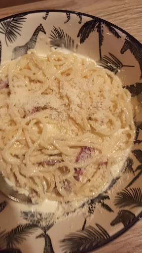 Concernant les plats, nous avons pris une pizza Ă partager et une carbo chacun Ă©tant grand fan de ce cĂ©lĂšbre plat italien đ€€ j'ai Ă©tĂ© conquise par la pizza et sa pĂąte fine ! En gĂ©nĂ©ral je ne mange jamais les croĂ»tes de pizzas pour optimiser la place dans mon estomac, mais lĂ les croĂ»tes Ă l'allure d'une flamekuch... đ ! Une premiĂšre pour moi et un rĂ©gal !! J'ai tout mangĂ© đ„° Pour les carbos, cependant, c'Ă©tait trĂšs bon, les vrais ingrĂ©dients d'une vrai carbonara, mais je trouvais que ça "baignait" un peu trop dans la sauce, mais ça ne m'a pas empĂȘchĂ© de dĂ©gommer mon plat pour autant đ