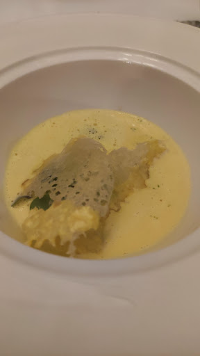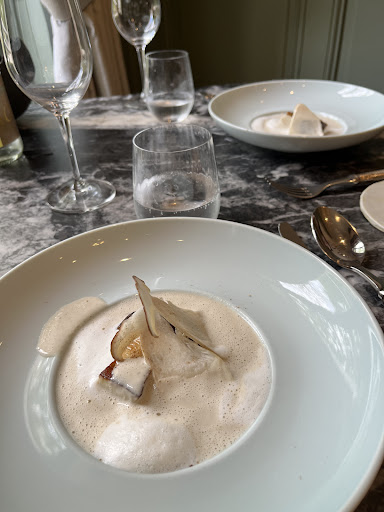 Read moreJ'ai tendance à ne pas laisser d'avis, mais l'expérience dans ce restaurant mérite d'être partagée. Une mauvaise réservation, malgré deux appels de confirmation. On se sent juger dès l'arrivée. Un menu sans grande diversité, sous couvert d'un thème "de saison", en gros du potiron à toutes les sauces. De la truffe, en entrée, qui n'en n'a que le nom. Des champignons sans saveurs. Un plat sur deux arrive tout juste chaud et sans parler des portions, relativement petites. Le pithiviers pas mauvais, mais la crème de fois gras sans saveur. Les St Jacques par contre banales, voir en surcuisson. Parlons de l'accord mets vins et du service. Du vin jeté dans le verre, sans expliquer sa provenance, son cépage ni pourquoi avec le plat. Il n'a pas été proposé de le goûter. Proposé en 4 verres, finalement servi en trois avec un vin rouge sur le dessert au citron. Cette erreur est rattrapée au dernier moment, par un sauterne "offert", mais finalement sera comprit dans la note de l'accord mets vin. Les desserts neanmoins, sont bons et permettent de finir agréablement. Enfin, assis à table à 19h30 pousser la porte à 22h30. 3heures pour 4 petits plats, heureusement que nos enfants sont sages et patients. Un restaurant qui se veut de haute qualité, mais qui, sur cette soirée aura...