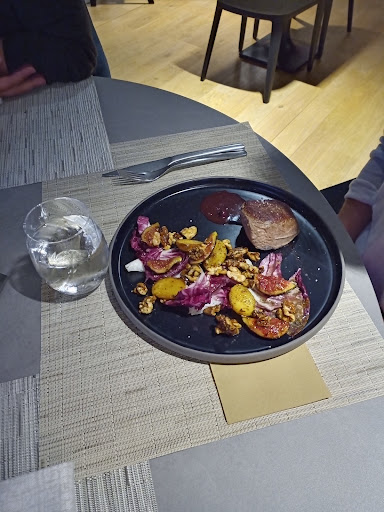 Read moreWe got the prawn appetizer, the veal and bass mains, and the royal chocolate dessert. The proteins were cooked well; the veal was juicy and the bass had a nice crisp. The bass' fennel salad came without a dressing, and was nearly flavorless. The veal sauce was uninteresting - possibly lacking acid - it reminded me of a TV dinner sauce. The royal chocolate came on a thin biscuit whose texture complemented the flavor, and a raspberry sorbet that - while possibly premade - worked nicely with the chocolate.