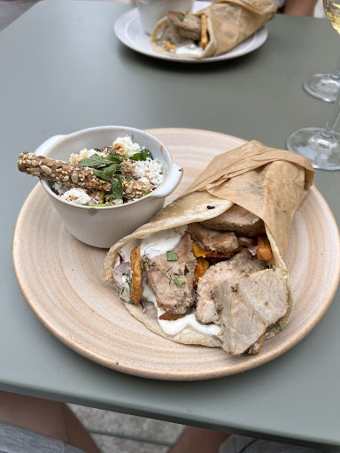 I had the delight of indulging in a memorable dining experience at Samos Greek Food today in Bordeaux. Let me tell you, it was truly extraordinary. Undoubtedly, they served one of the most delectable enhanced pitta gyros I have ever had the pleasure of savoring.
