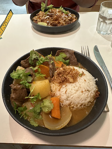 It's basically a take out restaurant with tables. It is clean,but not very cozy as can be expected. We were there on a Monday and it was one of the few places open that day. The owner/manager was very welcoming and friendly and the food was good value. They offer a variety of set dishes from Indonesia,Thailand etc. The portions were a good size and the pricing very reasonable. It seems to be a popular spot for take away as many people came in to pick up orders. Only a few other diners were...