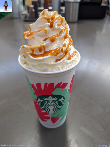 Read moreJ'en sors juste et trÚs déçu. Déjà la visibilité des tarifs est nulle, je m'attendais à payer aux alentours de 5euros via l'affiche et j'en ai eu pour 6.25. Tant pis, on dira simplement que j'ai mal lu. Mais j'ai demandé un frappuccino coco chocolat ( j'adore ce mélange ) et je n'ai eu qu'une simple et légÚre coulée de chocolat sur la mousse du dessus. Autant dire rien. C'était une jeune femme qui me semblait débuter qui m'a préparé la boisson. Du coup, je ne sais pas si c'était une erreur ou si le frappucino que j'ai pris ne devrait pas simplement se nommer "coco". Bref, je n'y retournerai pas ~