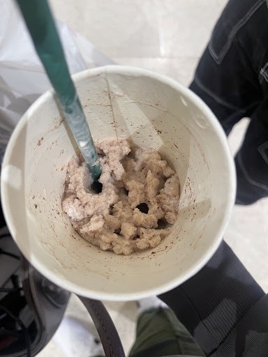 Là ce matin, je suis venu ambiance glaciale, j’ai demandé une boisson glacée avec des fruits il y a deux fruits à l’intérieur, ce n’est pas un jeu mot il y a réellement deux fruits.