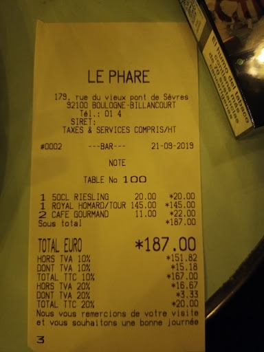 Les aspects négatifs: L'ouverture du restaurant un samedi soir est à 19h00. Pas de problème avec cela sauf qu'à 19h30 ils sont déjà "dans le jus". Les plateaux de fruits de mer sont préparés "à l'arrache" par l'écailler chargé de la vente à emporter, dont l'officine est adjacente au restaurant. Il doit donc parcourir le trajet à pied jusqu'au restaurant (environ une vingtaine de mètres) et la présentation du plateau s'en ressent (145€ le plateau royal homard comprenant 2 demi homard, 2 demi tourteau, langoustines, crevettes roses et grises, palourdes, amandes, huîtres,bulots et bigorneaux). Une huître sur deux contient des crevettes grises ou des bigorneaux... Les guéridons sont bien trop petits pour un plateau, et ceux-ci sont posés sur un tabouret (donc instables et trop bas). Hormis le personnel d'encadrement remarquablement efficace, les serveuses et serveurs ne sont guère efficaces : J'ai pu constater de nombreux retours à vide : Pas d'optimisation des trajets...
