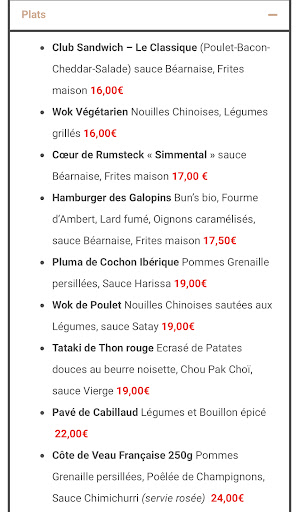 Les plats conseillés par notre serveuse : Le club-sandwich « le classique » et le « végé », le tartare de boeuf façon thaï, l’hamburger des galopins et le coeur de rumsteck.