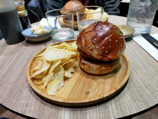 Nice but quite small. It offers sushi as well as hot dogs/burgers and bagels. Sushi is quite nice (what they call "tartare" is actually a (chirashi), as well as most makis. Miso soup is nothing special. Never tried the hot dog or bagels honestly, they seem good though. Prices are in the average, I would say. I was there for lunch and was served quite quickly (payment didn't require much time either), even if the place was...