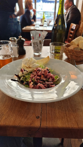 Mon expérience chez Odette a été un délice du début à la fin. En entrée, la salade de lardons était un exemple parfait de la cuisine traditionnelle française, avec des lardons croustillants et une vinaigrette qui rehaussait les saveurs. L'accompagner d'une bière Meteor IPA était un choix judicieux, la bière apportant des notes houblonnées qui se mariaient bien avec la salade.