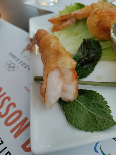 À l'intérieur, la salle est plus grande qu'on ne peut le croire. Il y a un étage beaucoup plus calme que le rez-de-chaussée, et peut-être une trentaine de places dans le restaurant. Nous avons pris un menu midi qui était à 17€. Bon déjà pour le prix je pensais qu'on avait droit à un nem et un rouleau de printemps en entrée, ce qui n'est pas le cas et il n'y a pas de mention "ou" entre les deux. J'ai choisi le rouleau de printemps, qui était réellement énorme et globalement bon, même s'il était composé à 90% de vermicelles de riz. Il y avait une petite feuille de salade, quelques morceaux de crevette, et pas du tout de carottes ou autres crudités. Ça fait un peu étouffe chrétien.