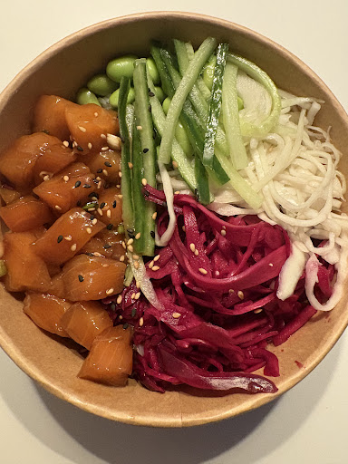 Read moreNous avons commandé via uber eats deux poké au saumon. Le poké est classique, digne de l’enseigne Sushi Shop qui n’est pas spécialiste dans le domaine. Le riz est toujours bien cuit et vinaigré, les morceaux de saumon sont vraiment très peu présents et l’assaisonnement ne m’a pas bien convaincue. J’ai commandé d’autres fois et c’était meilleur. Pourtant, j’ai bien pris le saumon mariné. Le chou rouge apporte du croquant tout comme le concombre et de différentes couleurs. Le combo des deux n’est toutefois pas le meilleur et encore moins tenant compte qu’il y a également du chou blanc. Il s’agirait peut être de faire un choix entre les deux. A la place du chou rouge mettre des radis ainsi la couleur reste la même. Voilà en terme de crudités c’est pas bien fou. Le poké est de taille large donc visiblement un petit peu trop petit pour un large size. Ça reste frais comme toujours. Environ 15€, ça fait l’affaire mais ça ne battra jamais une vraie...