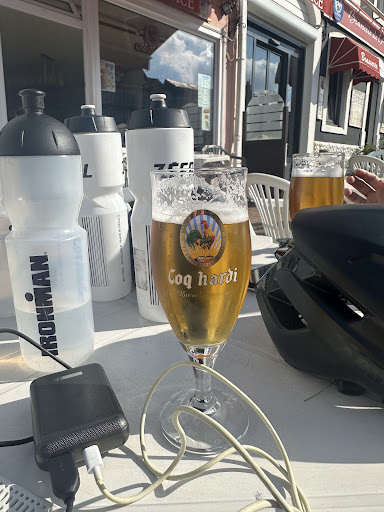 Op een eerder koude en bewolkte novemberdag was dit het enige cafeetje dat op de Place Léon Blum open was. Een gezellige oud volkscafeetje met een vriendelijke baas en bazin waar je wel wat mee kon praten. We hebben daar een koffietje gedronken om ons wat op te warmen en een croque-monsieurtje gegeten. De croque-monsieur werd op een kartonnen bordje opgediend (2 €). We zijn dus wel in Frankrijk, d.w.z., niet zo goedkoop. Als je een grote koffie vraagt krijgt je een kopje zwarte koffie van 16 cl (2,60 €). Vraag je er melk bij, krijg je een melkcapsule en dit kost 0,20 € extra. Achteraan in de tuin (achter de toiletten) is nog een terras, daar kost elke consumptie nog een extra 10 eurocent meer. Ook het bier is niet echt goedkoop. Het bier van het vat is Charles Quint, een pintje 25 cl kost 2,60 € en voor een Leffe uit de fles van 33 cl ben...