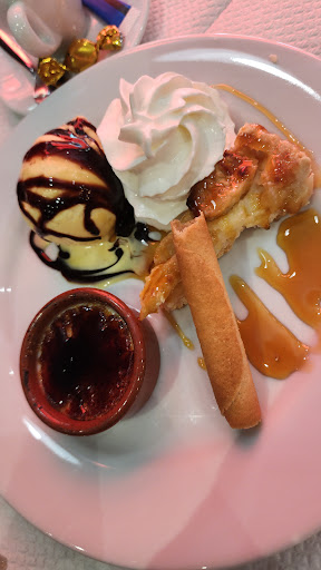 I had the mussels with garlic cream sauce, served with chips â absolutely delicious! The garlic sauce was especially flavorful and rich. For dessert, I went with their special offer: a selection of mini desserts including crĂšme brĂ»lĂ©e, ice cream, whipped cream, and a slice of apple tart, accompanied by a small espresso. Everything was fresh and tasty.
