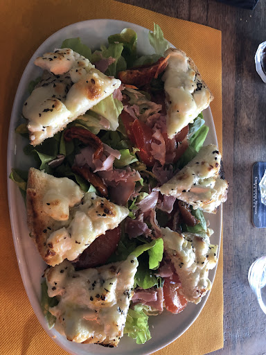 This tiny restaurant, right on the water front is frequented by locals but very welcoming to tourists. There is an English language translation of the menu, and the staff understand some English, if you are linguistically challenged like me. I ordered the a salad with goats cheese on toast which was superb. The salad was fresh, with dressing provided separately and the goats cheese was piping hot. Cost €13, which is reasonable for the location. The view of the beach is great with dozens of kite surfers and wind surfers going up and down. Really is great for a quick, yet...