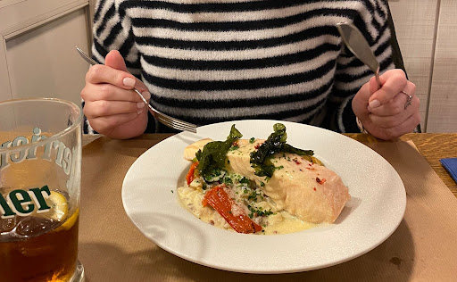 We stopped for a late lunch while visiting Wissant on a Tuesday in October when little else was open. We had a very lovely young lady who served us; the salmon I had was a huge portion, so tender. My husband had the moules, well recommended. We were serenaded by a large group of noisy ducks who kept disrupting the traffic & attempting to come in the restaurant - kept us entertained. All in...