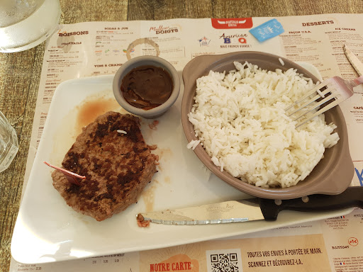 Read moreNous etions entrain de manger, viande tres bonne, cuite bleue exactement comme je voulais, petite sauce roquefort. Bref tout se passe bien, jusqu'Ă ma derniĂšre frite ou je vais au fond du pot. Et lĂ j'ai un haut le coeur. Un morceau de grillĂ© au fond de ma sauce. J'informe la personne qui nous a placĂ©, je lui montre, et elle me rĂ©pond cest quoi, je lui dit cest ma question, c'Ă©tait au fond, ca ressemble Ă quelque chose de grillĂ©. Elle me dit, oui, et? (Je suis restĂ©e bete.) Et bien jai eu des haut le cĆur. Elle me dit je vais dire en cuisine de faire attention. Jai dit merci.... La serveuse vient, nous dit tout s'est bien passĂ© ? Nous tenons le mĂȘme discours. Elle regarde de plus prĂšs et nous dit de façon tres naturelle, ah non mais ne vous inquietez pas ce n'est rien. Les sauces sont Ă cĂŽtĂ© du grill et un morceau de viande Ă dĂ» gicler dedans.. Je suis sidĂ©rĂ©e. Je rĂ©ponds, quand vous mangez au resto, s'il y avait des choses dans votre sauce, vous le prendriez ainsi (bon elle a fait preuve de compassion). Bref. Nous allons pour regler Ă l'accueil, et la c'est l'apothĂ©ose.... Tout sest bien passĂ© ? Non mais nous avons dĂ©jĂ signalĂ© la cause. Il repond ah, la sauce roquefort. Jai dit oui franchement jai eu envie de vomir. Il ma dit dun ton tres naturel et professionnel : "ah mais non ce n'est rien, cest quand ils ont grattĂ© le grill cest un morceau de graillon qui a giclĂ©. Ca arrive, ca vous a Ă©tonnĂ© ?" Je rĂ©ponds : franchement si c'Ă©tait vous?. ... bref monsieur trouvait ca normal et naturel.... Il nous demande de regler, ma fille a demandĂ© un geste. Ce monsieur nous a fait un geste commercial. Tres franchement, je ne pourrai plus retourner dans ce restaurant, car pour moi le restaurant doit maintenir des normes d'hygiĂšne .... Et un savoir faire et ĂȘtre auprĂšs de la clientĂšle.... bref manque de professionnalisme et de respect. Sans parler de trĂšs fortes odeurs de remontĂ©e d'Ă©gout quand on arrive vers...