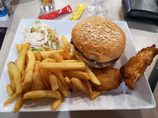 Read moreWe wilden onze kinderen het eten uit de snackbar van onze doorreiscamping niet nog een keer aan doen. We gingen dus op zoek naar een beter alternatief in het stadje Thoissey. We kwamen om 21.15 uur aan (keuken sluit om 21.30 uur), de zaak zat vol en wij wilden nog een afhaalbestelling plaatsen voor 5 personen. Na enige twijfel vanwege de drukte besloten de eigenaren toch een maaltijd voor ons te bereiden. Wat een super service! We hebben een potje tafelvoetbal gespeeld en merkten op dat de chef met veel passie en toewijding aan het koken was in de open keuken. Bij de caravan werden we aangenaam verrast door de beste burgers (steak hachée) die we in tijden hebben gegeten en de verse -in krant geserveerde- frietjes, die volgens de kindjes de lekkerste friet is die ze ooit gegeten hebben. Wat ons betreft mag de prijs met 50% stijgen voor het fantastische maal wat we genoten hebben. Burger's café levert een fantastisch, ambachtelijk en huisgemaakt product waar ook een eerlijke prijs voor...