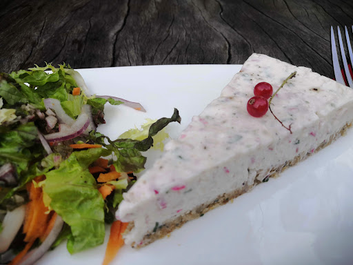Host was very friendly and attentive. Nice decoration and the backyard dining area. They grow fruits in the backyard. Their raspberries are very sweet and rich in flavor. The Entree (appetizer) was a cheesecake made from French white cheese (fromage blanc) and peel of red radish, which...